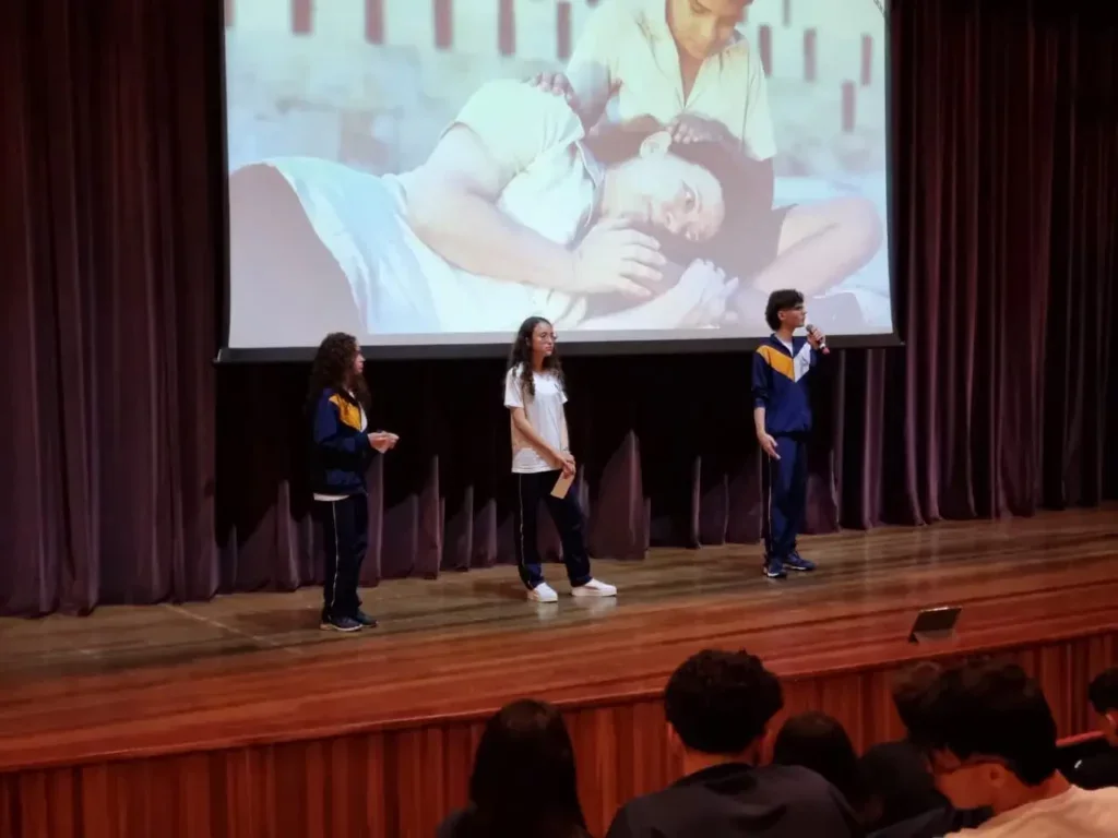 Com um debate dinâmico e participativo, os alunos mediadores conduziram as discussões com habilidade, promovendo uma troca de ideias construtiva e enriquecedora. Esse formato permitiu que os participantes se aprofundassem ainda mais nas questões levantadas pelo filme, desenvolvendo argumentação e capacidade de análise crítica.